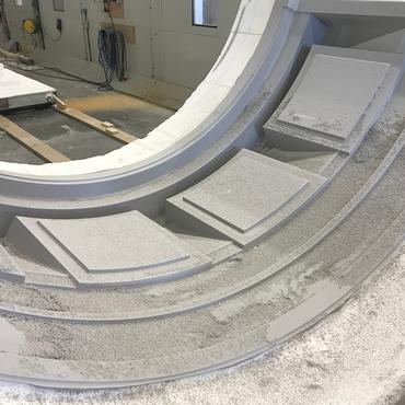 由于不能采用传统材料,使用A1(Acrylic One)进行阿姆斯特丹Klaverstraat纪念性立面的重建。 经过3D扫描和工程设计后,制成了CNC铣削模具以生产独特的轻质A1面板。添加了铝制固定系统,以实现牢固而轻松的安装。 Nedcam负责这个复杂项目的工程,模具制造和实现最终生产。选择A1是因为其自然的感觉和外观,形状可自由改造,使用玻璃纤维增强材料的重量轻,可持续性和出色的防火性能。 图片显示了从模具制造,A1外墙面元件生产,铝固定系统安装到最终外立面的过程。更多信息: Nedcam