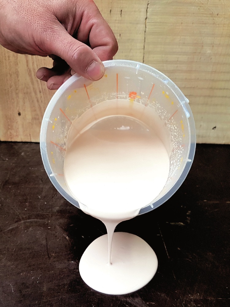可以用刮铲(少量)或使用混合器进行混合。首先,开始搅拌A1液体,并逐渐添加A1粉末。